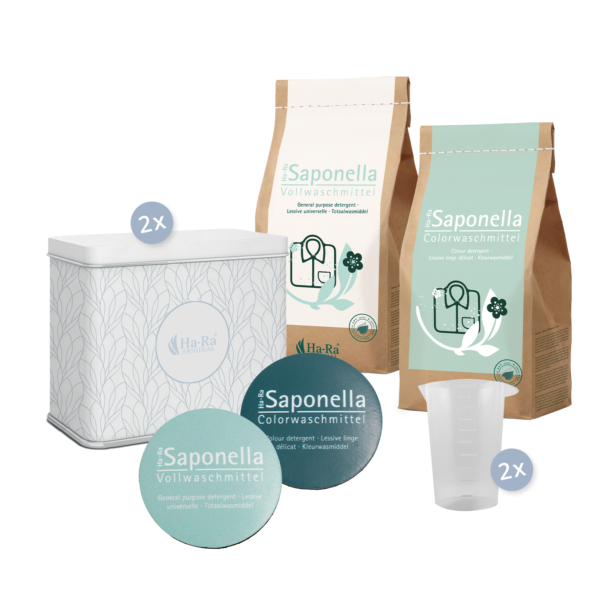 Pour le nettoyage du linge blanc en lave-linge Ajustée à l’idéal pour le nettoyage des fibres Ha-Ra. Ne convient pas à la laine et à la soie. CONSEIL : pour le linge de couleur, nous recommandons la lessive linge délicat Saponella de Ha-Ra.
